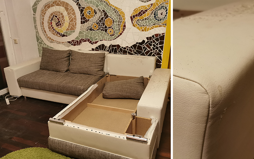 Über Kleinanzeigen hab ich ein Sofa gestochen, welches von den Maßen grad so passte und grundsätzlich meinen Vorstellungen entsprach. Aber halt gebraucht und die Bezüge ziemlich abgerockt.